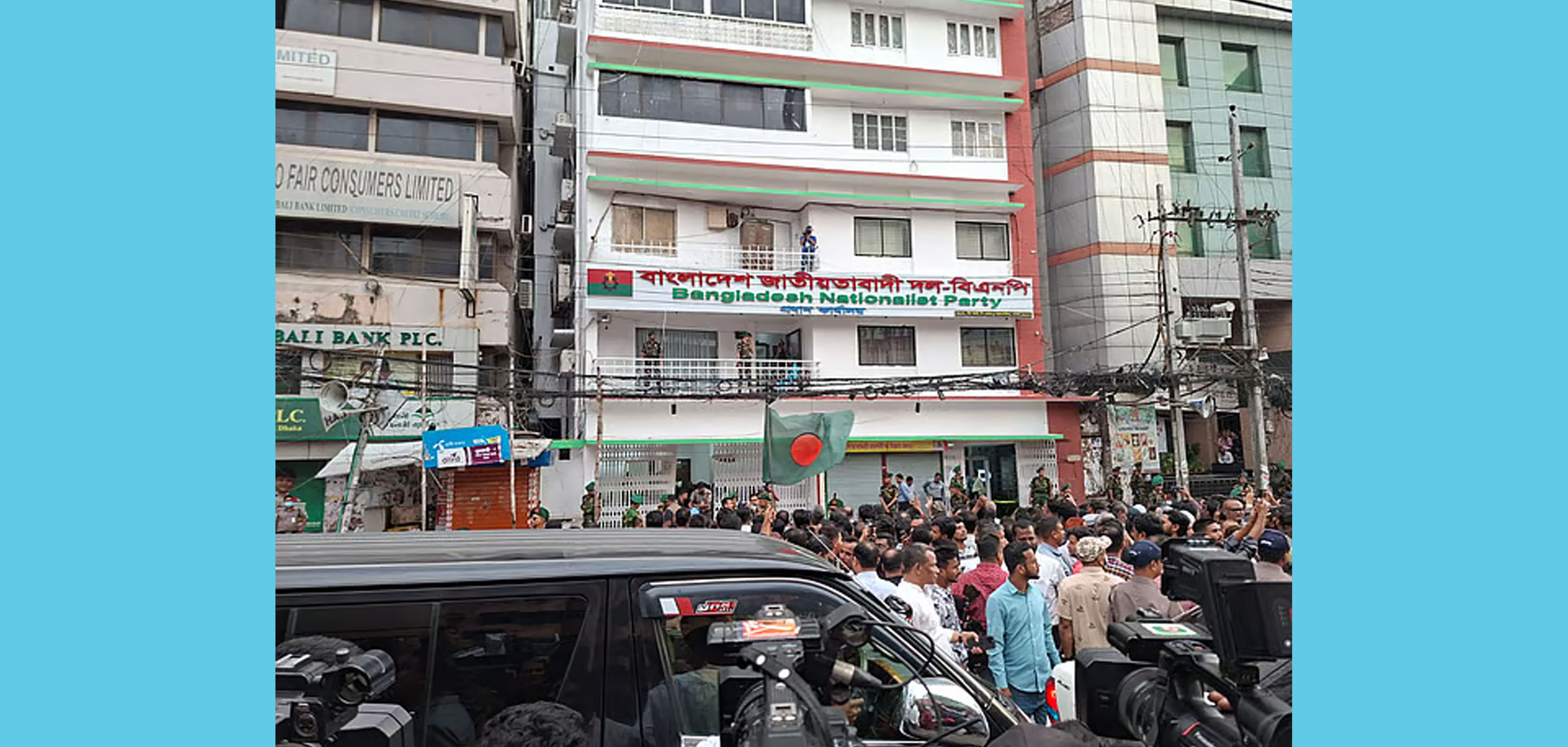 নয়াপল্টনে বিএনপির দলীয় কার্যালয় এলাকায় নেতাকর্মীদের ভিড়।