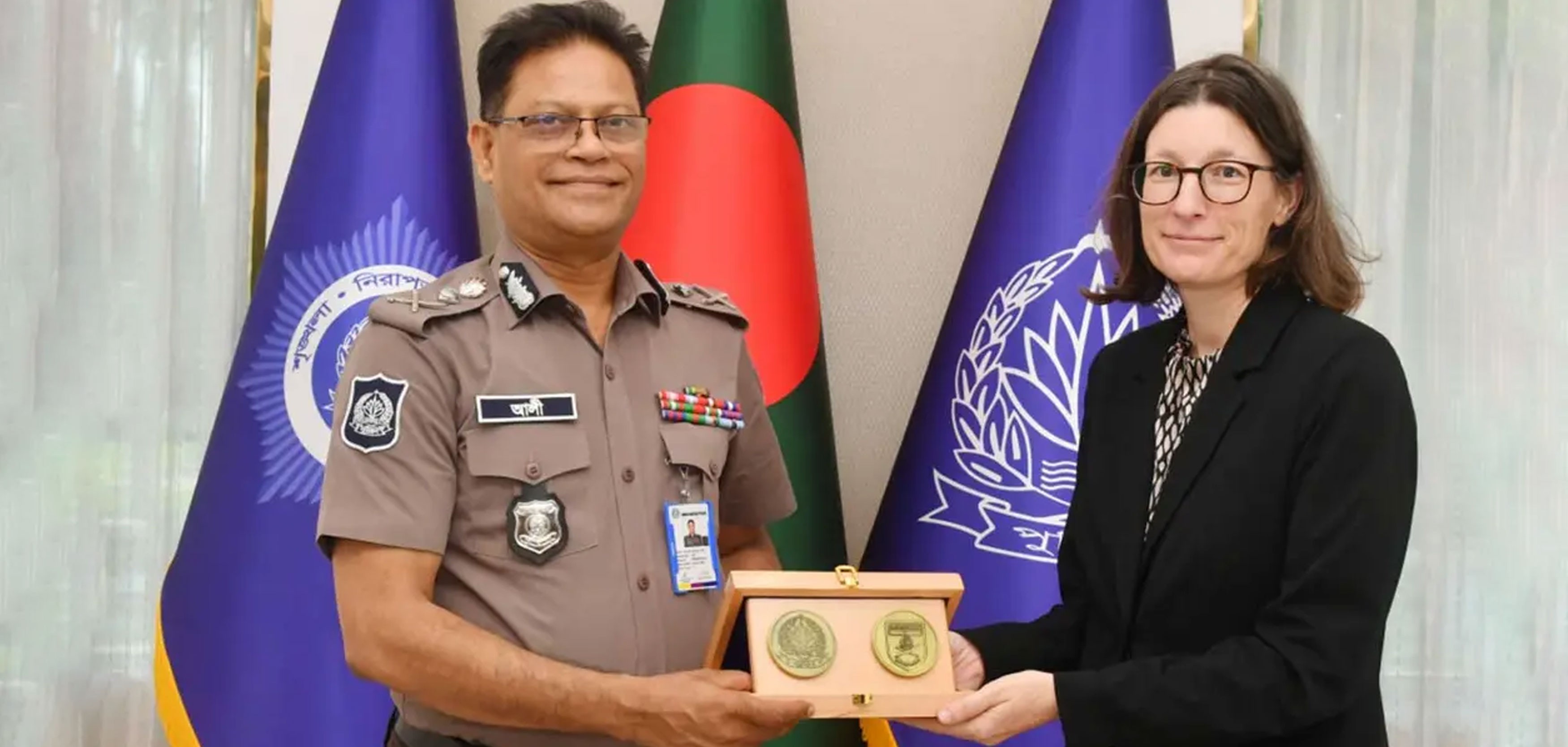 বাংলাদেশ পুলিশের মহাপরিদর্শক মো. আলী হোসেন ফকির এর সঙ্গে সৌজন্য সাক্ষাৎ করেছেন ঢাকায় নিযুক্ত জার্মান দূতাবাসের ডেপুটি হেড অব মিশন আনজা কার্স্টেন।