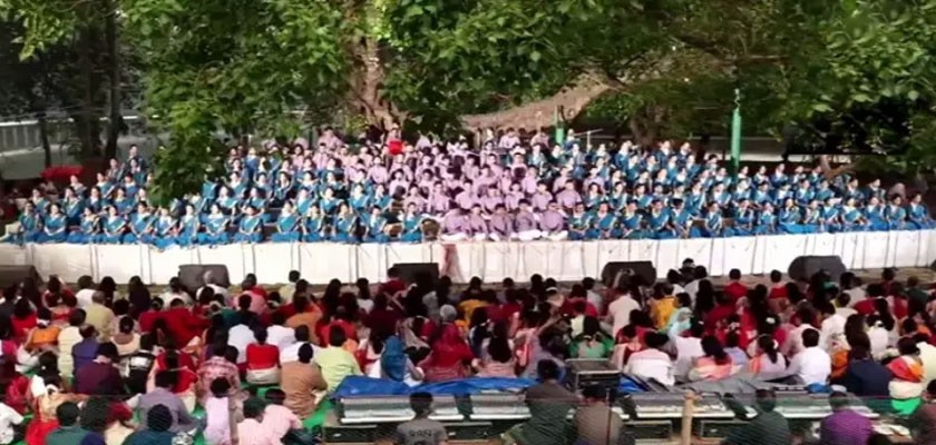 বাংলা নববর্ষ ১৪৩৩ কে বরণ করে নেওয়ার প্রভাতি এই অনুষ্ঠানের এবারের মূল ভাবনা ‘চিত্ত যেথা ভয়শূন্য, উচ্চ যেথা শির’।