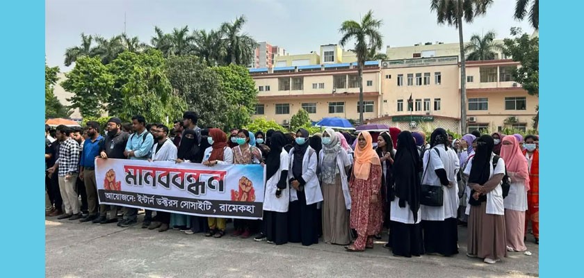ইন্টার্ন প্রতিনিধি তানভীর আহমেদ তৌকির বলেন, তাদের এক দফা দাবি— চিকিৎসকদের নিরাপদ কর্মপরিবেশ নিশ্চিত করা এবং ঘটনার সুষ্ঠু বিচার।